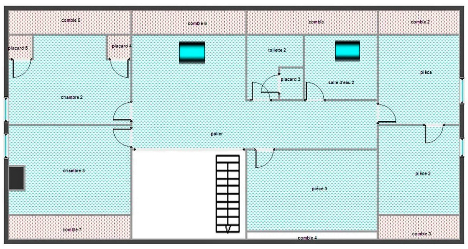 Rangements en sous-pente dans toutes les pièces du 1er étage + Placards.