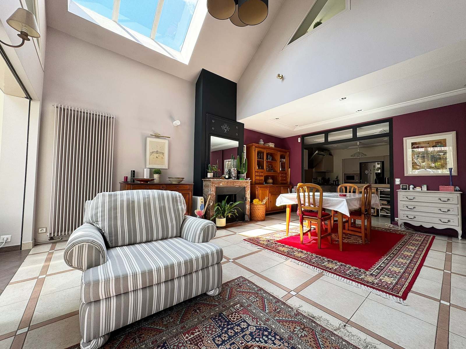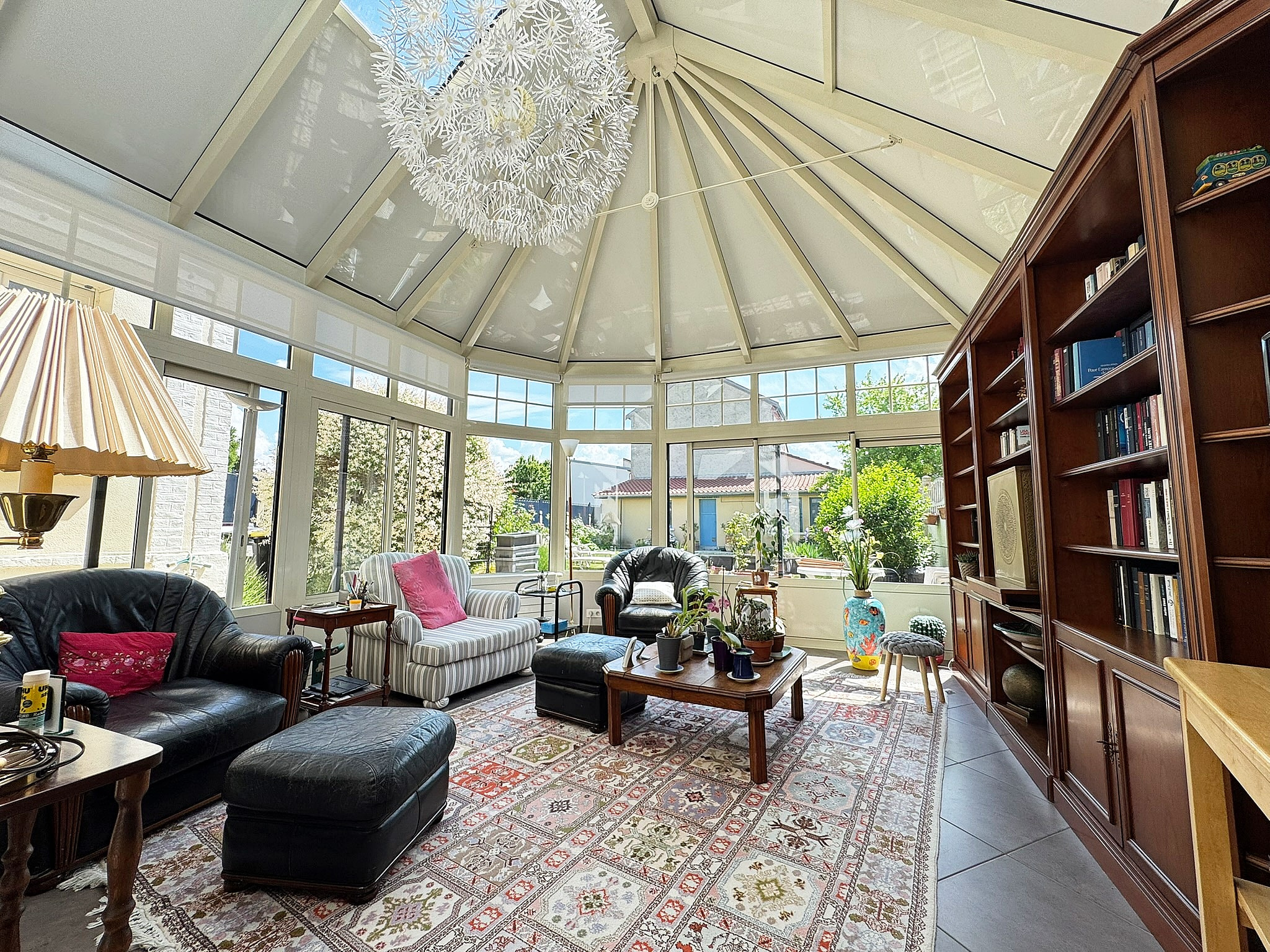 • Au rez-de-chaussée : Entrée avec placard, un espace ouvert exceptionnel de 67 m² avec la cuisine équipée / le double séjour / la véranda.