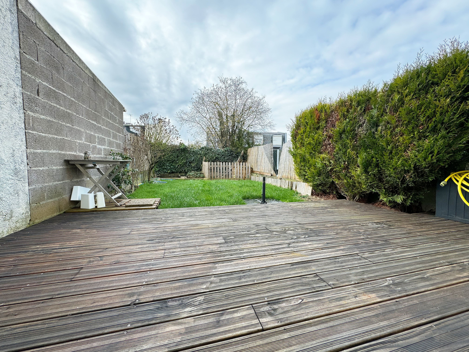 Profitez de sa terrasse très Cosy en belle exposition Sud-Ouest pouvant accueillir un jacuzzi, arrivée d'eau et électricité déjà en place.
