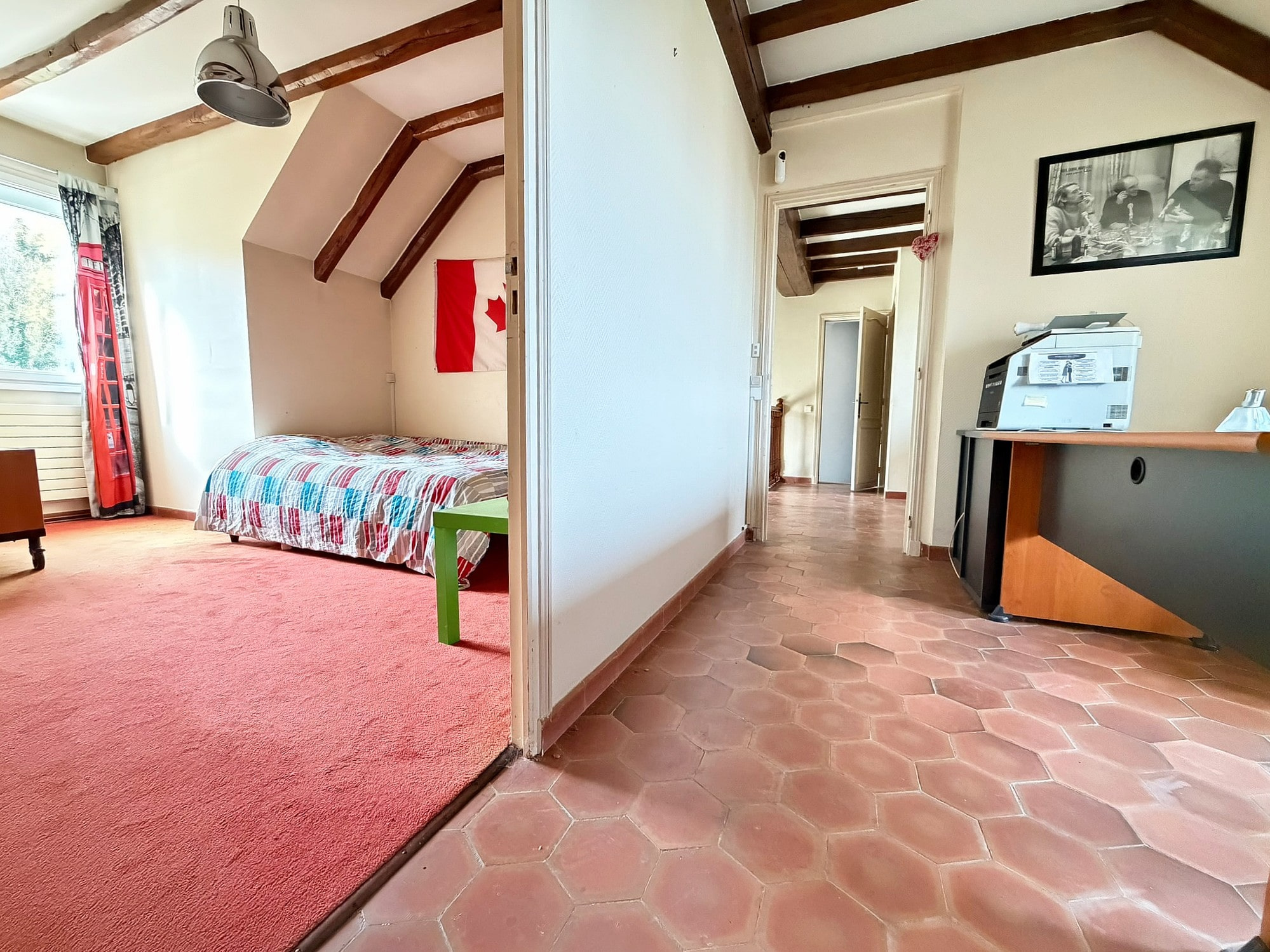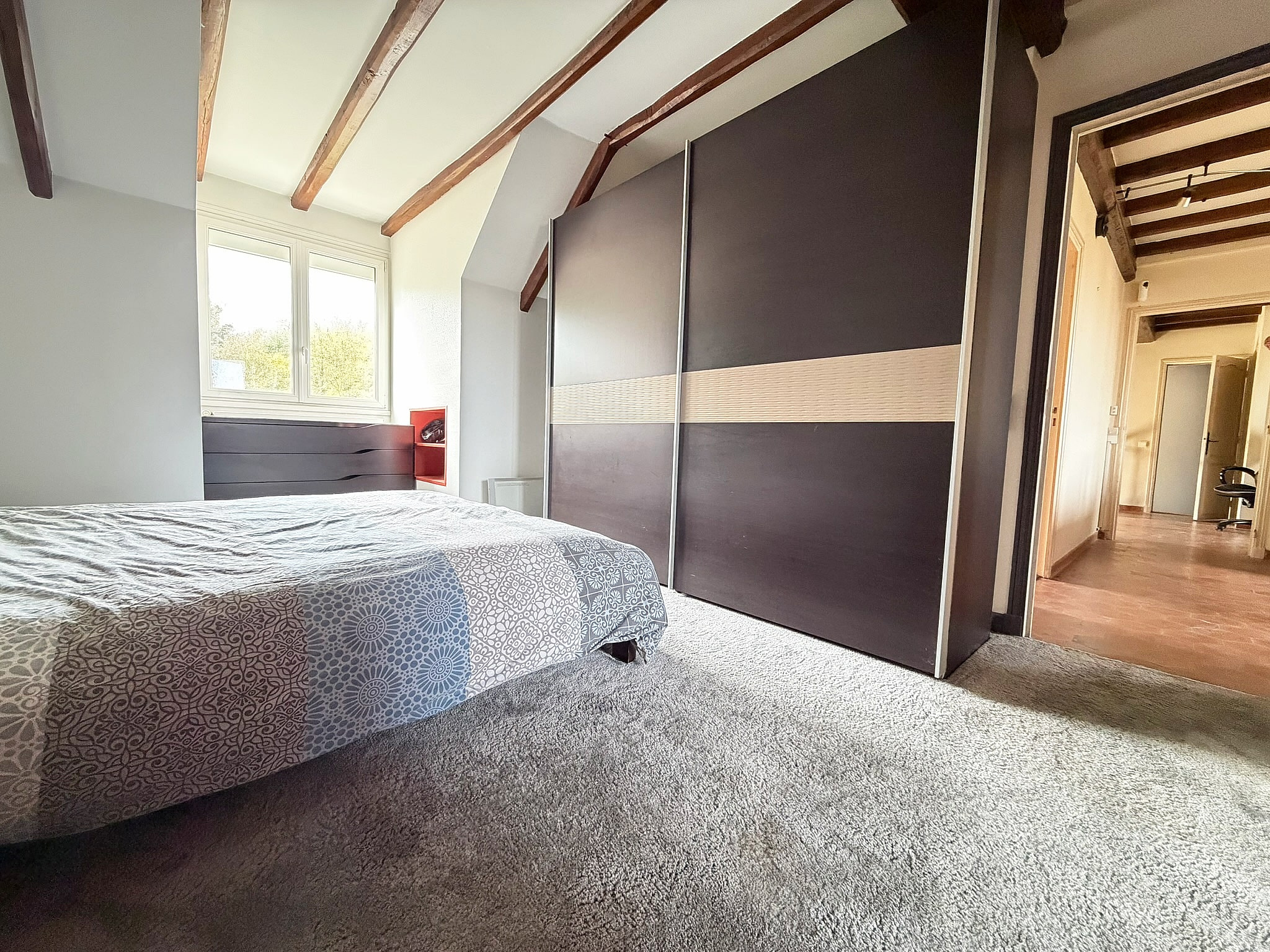 • À l'étage : un grand palier, un espace pour aménager votre bureau ou votre coin télé Cosy, 2 belles chambres, dont une en chambre parentale avec dressing et salle d’eau privative, wc.