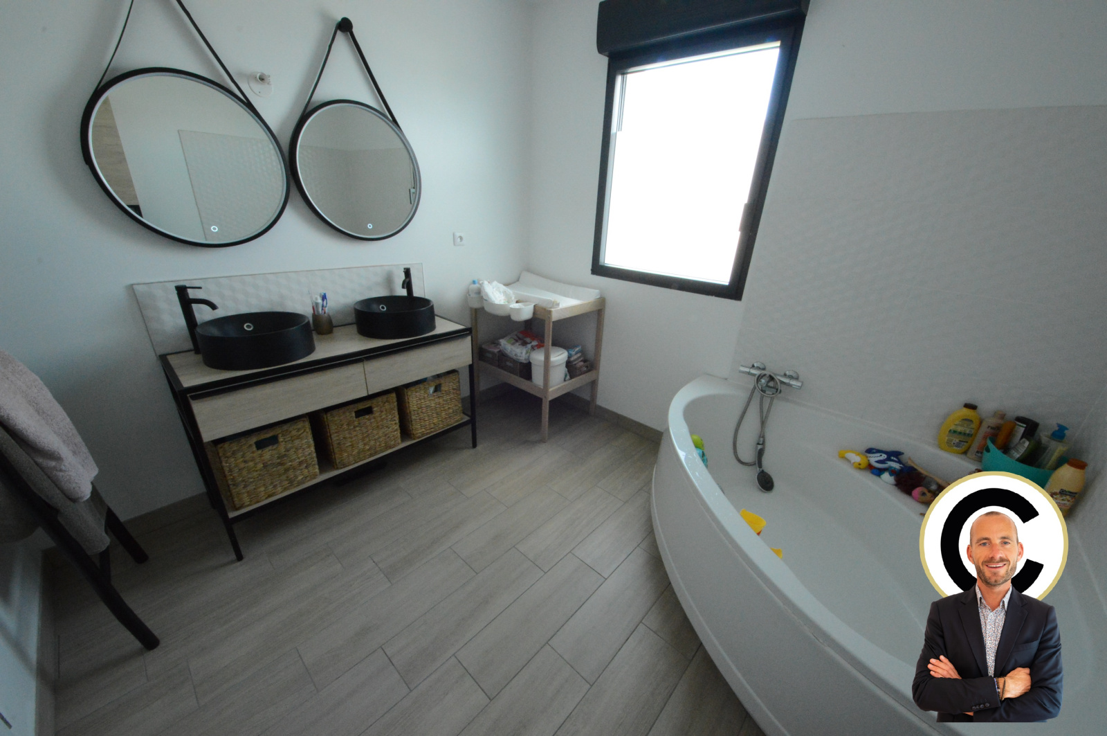 au rdc : Entrée, un bel espace de vie salon séjour très lumineux ouvert sur une magnifique cuisine donnant sur la terrasse et le jardin, wc, lingerie.