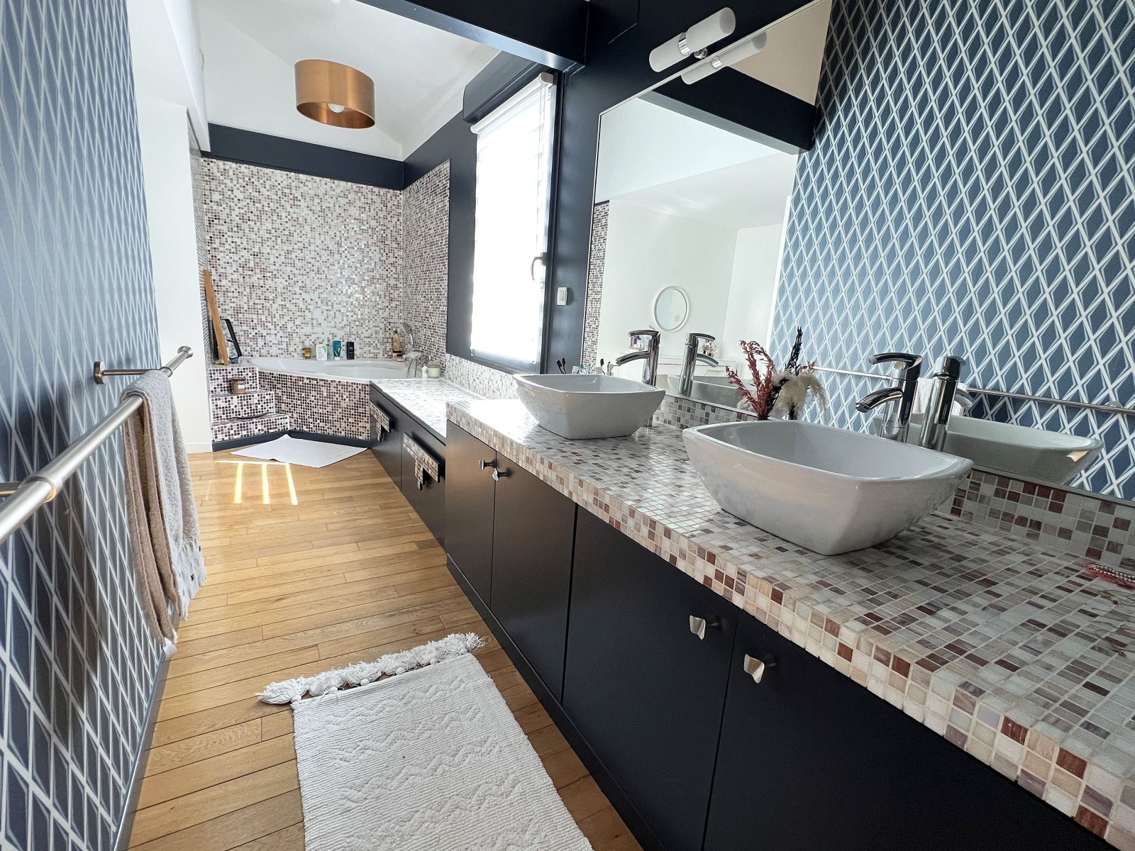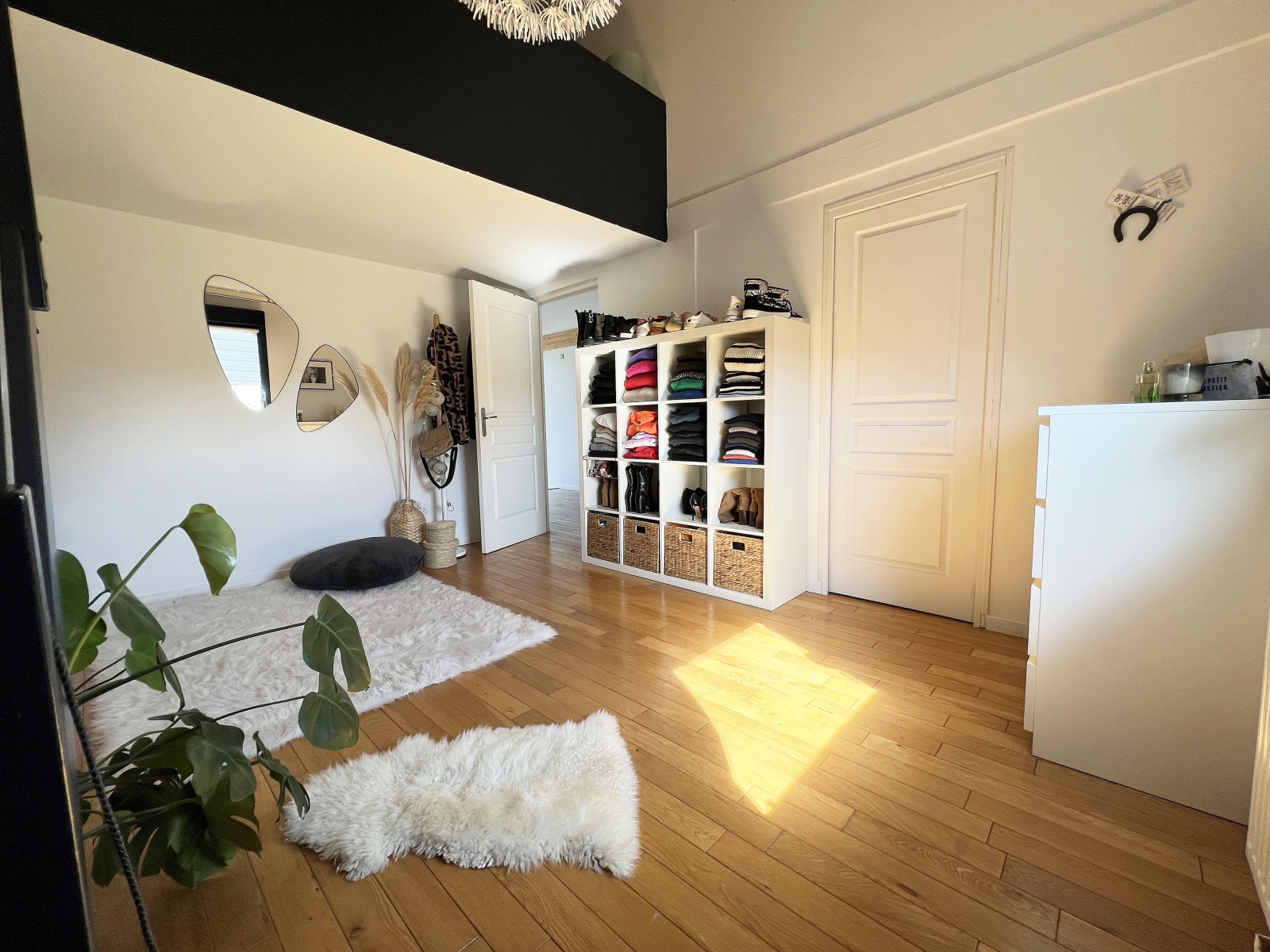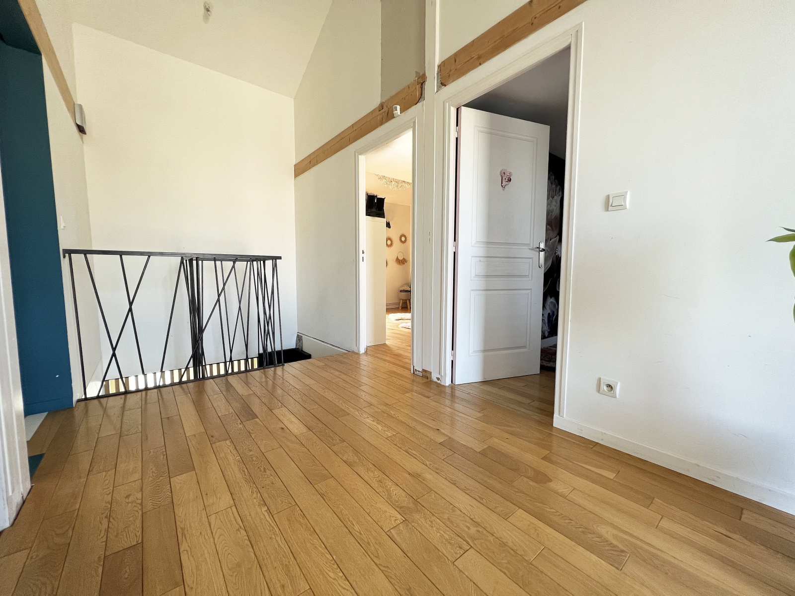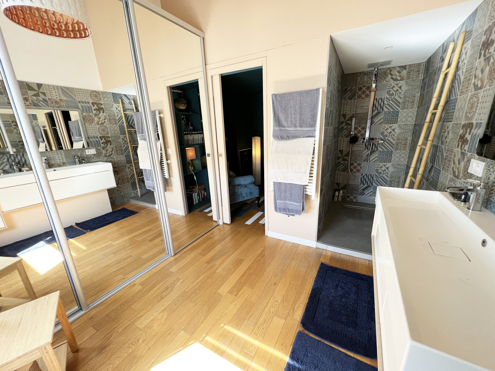 à l'étage : Vaste palier desservant 2 chambres avec leurs mezzanines + 2 chambres avec placards et dressing, une salle de bains avec baignoire, un cabinet de curiosité vous mènera vers une salle d'eau avec douche à l'italienne et wc séparé.