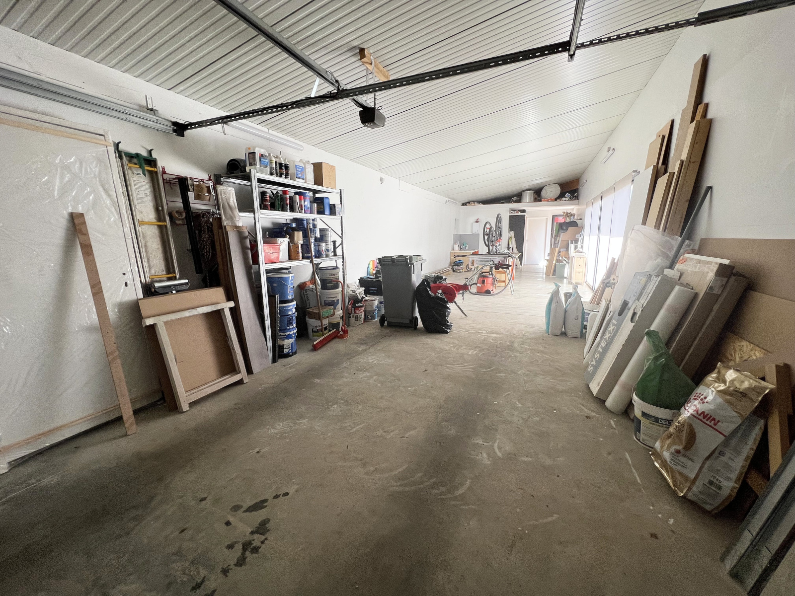 Accès au premier garage avec de nombreux rangements et à la cave.