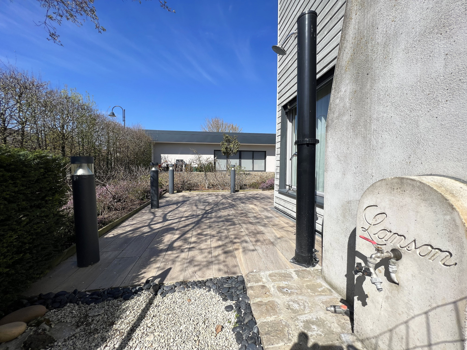 Une terrasse carrelée de 120 m² semi-couverte pour le coin cosy et un espace piscine/détente avec douche extérieure.