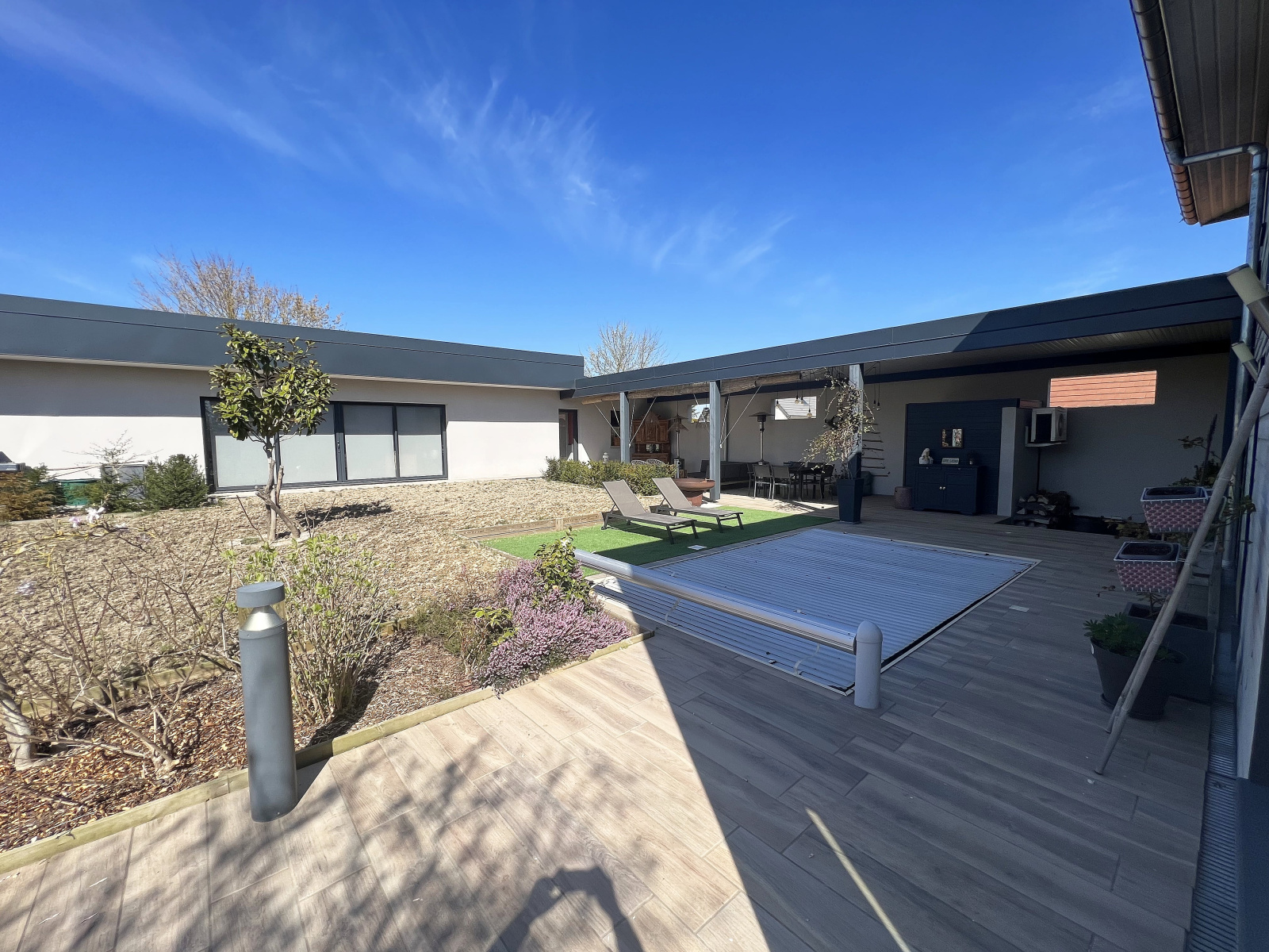 Découvrez cette superbe maison de 2006, construction à ossature bois économe et écologique, offrant de très belles prestations, avec jardin sans vis à vis, piscine, garages et cave.