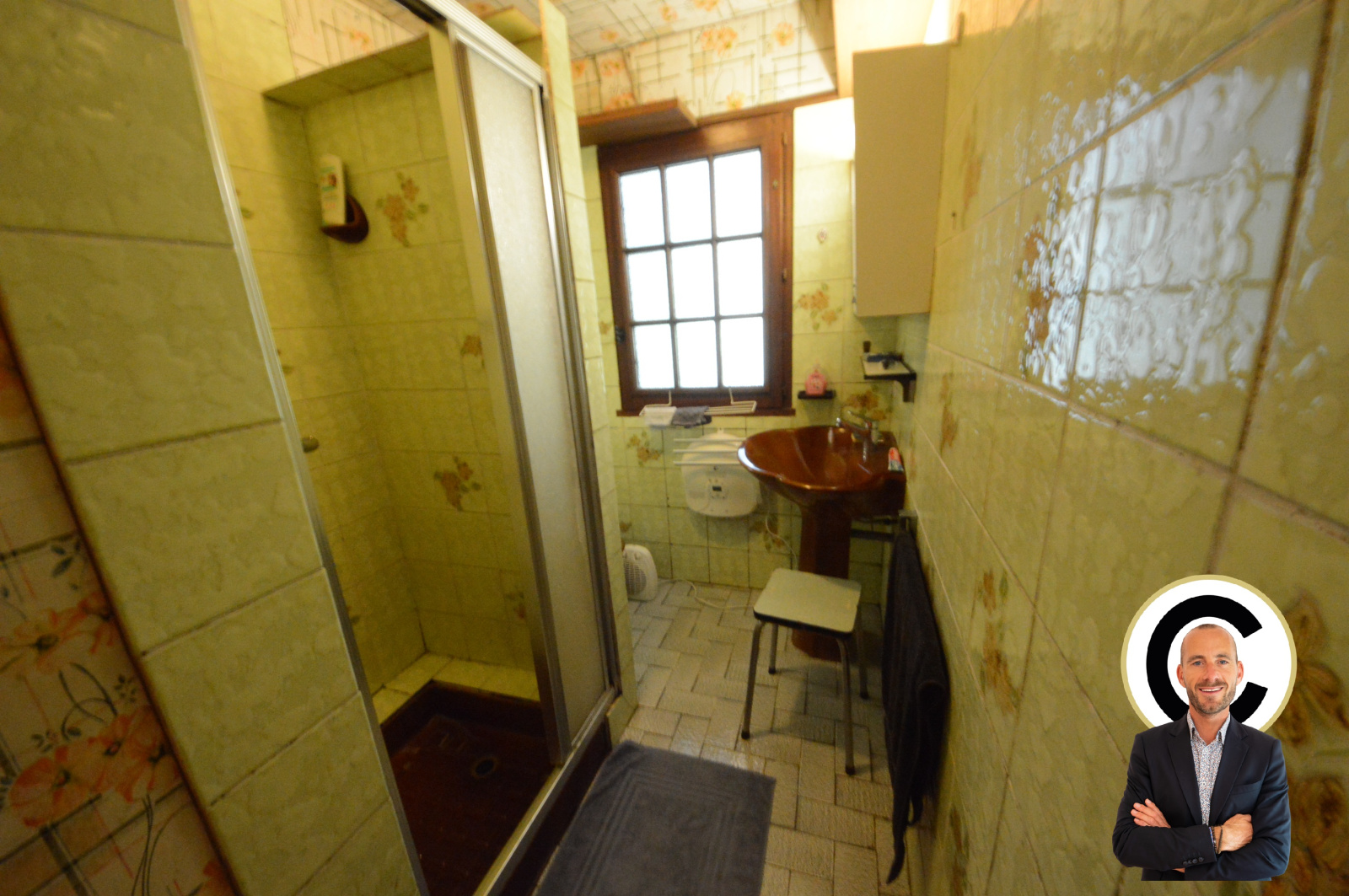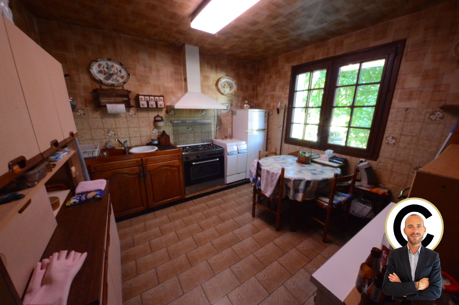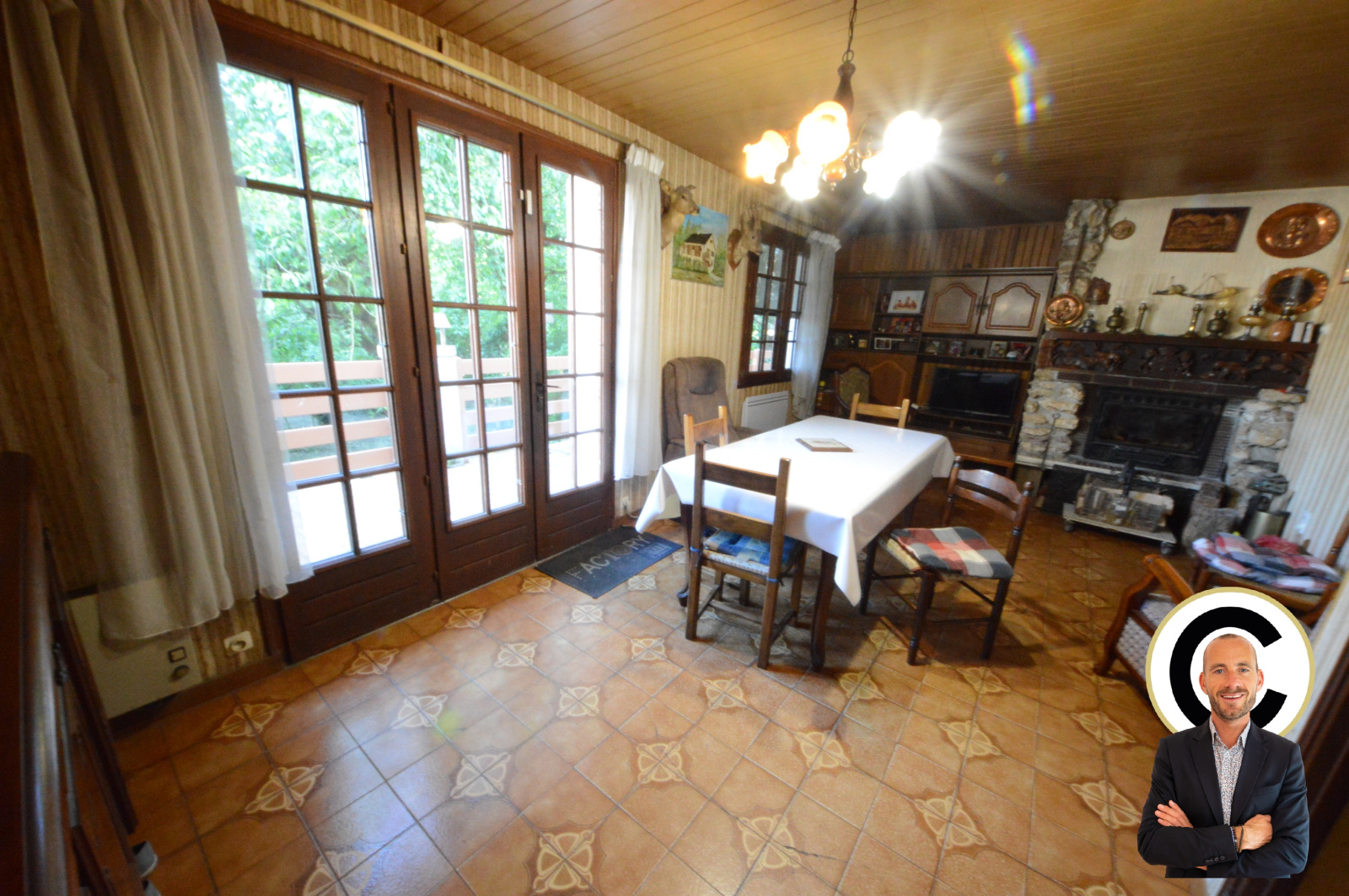 Comprenant : Entrée, salon avec cheminée bois, cuisine, wc, salle d'eau, trois chambres.