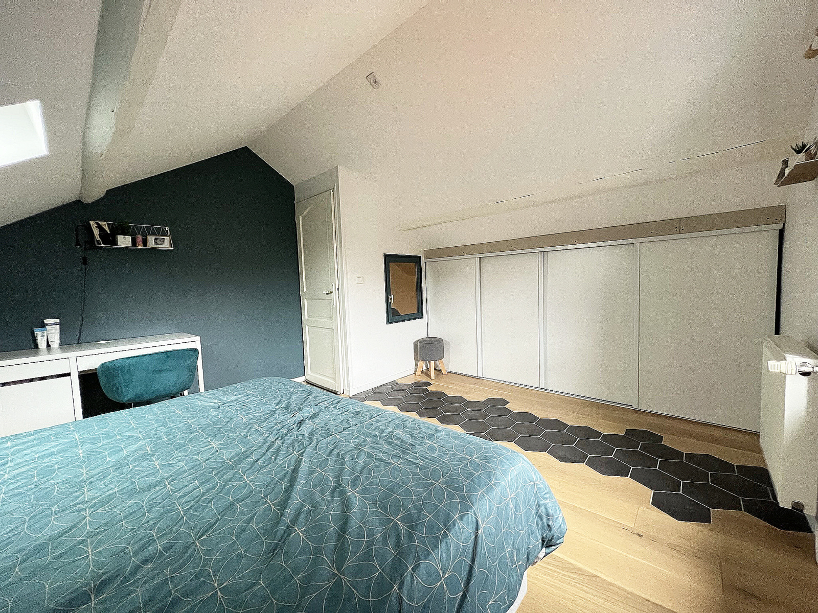 2ème étage : Chambre aménagée avec placards (9,01 m² habitable et 16 m² au sol).