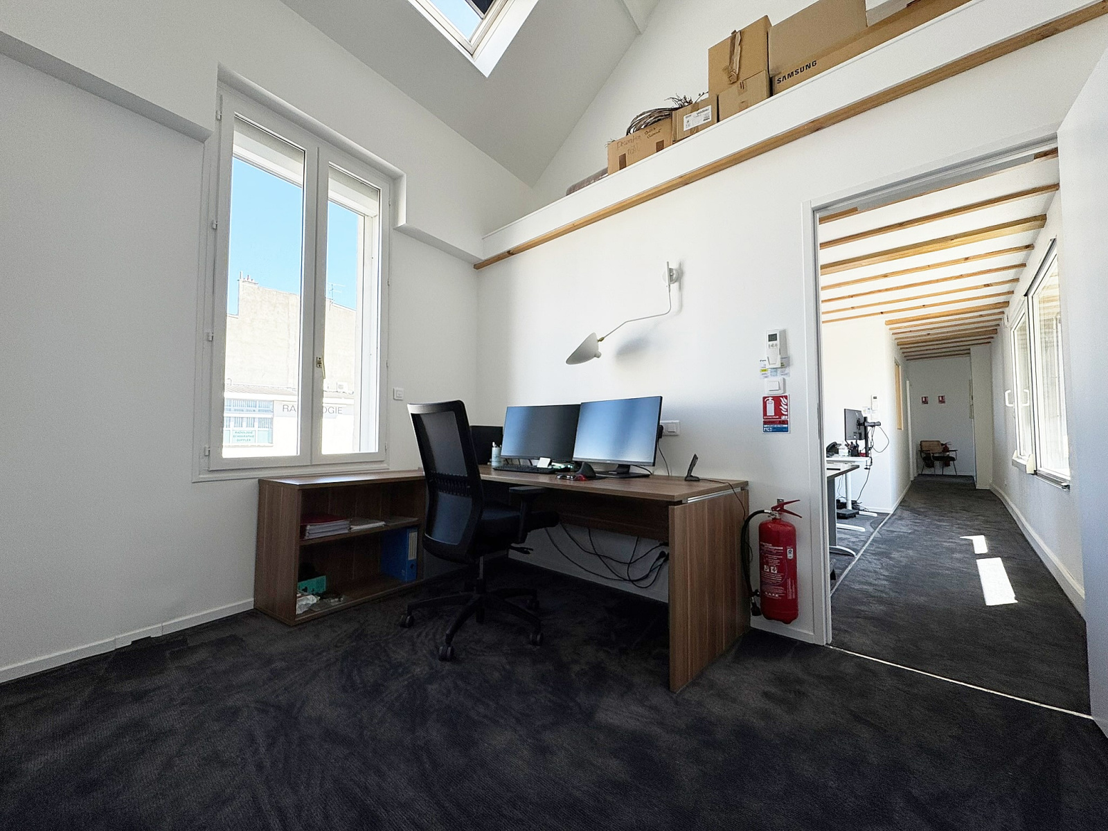 Situé au premier étage, cet espace bureaux a profité d'une jolie rénovation par ses propriétaires, fenêtres, peintures, sols, électricité, cuisine neuve, climatisation réversible.