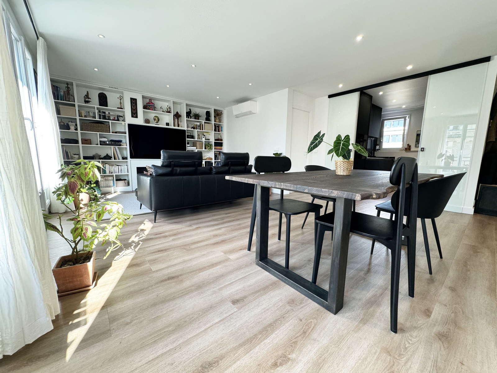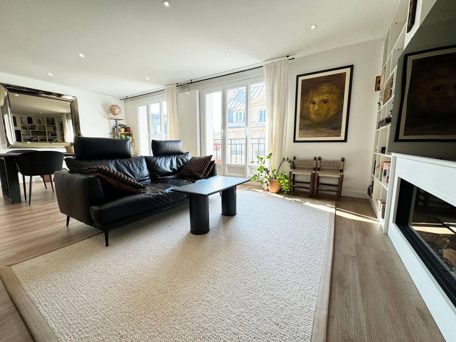 Belle entrée avec espace vestiaire, séjour double de 34 m² baigné de lumière avec accès aux balcons, cuisine aménagée et équipée + arrière-cuisine aménagée, deux grandes chambres (16 m² et 13 m²) dont une avec son dressing et son balconnet, salle d'eau, wc séparé.