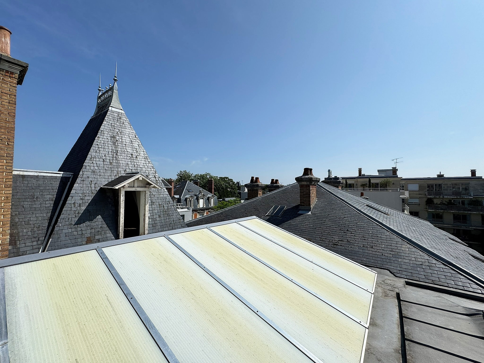 L'appartement occupe tout le deuxième étage ainsi qu'un accès incroyable au 3ème étage où vous découvrirez un grenier aménageable aux beaux volumes et l'accès au toit pour apprécier des vues splendides sur la ville et sur la Cathédrale.