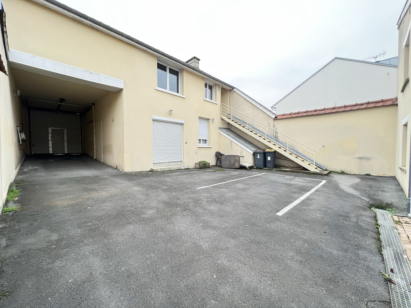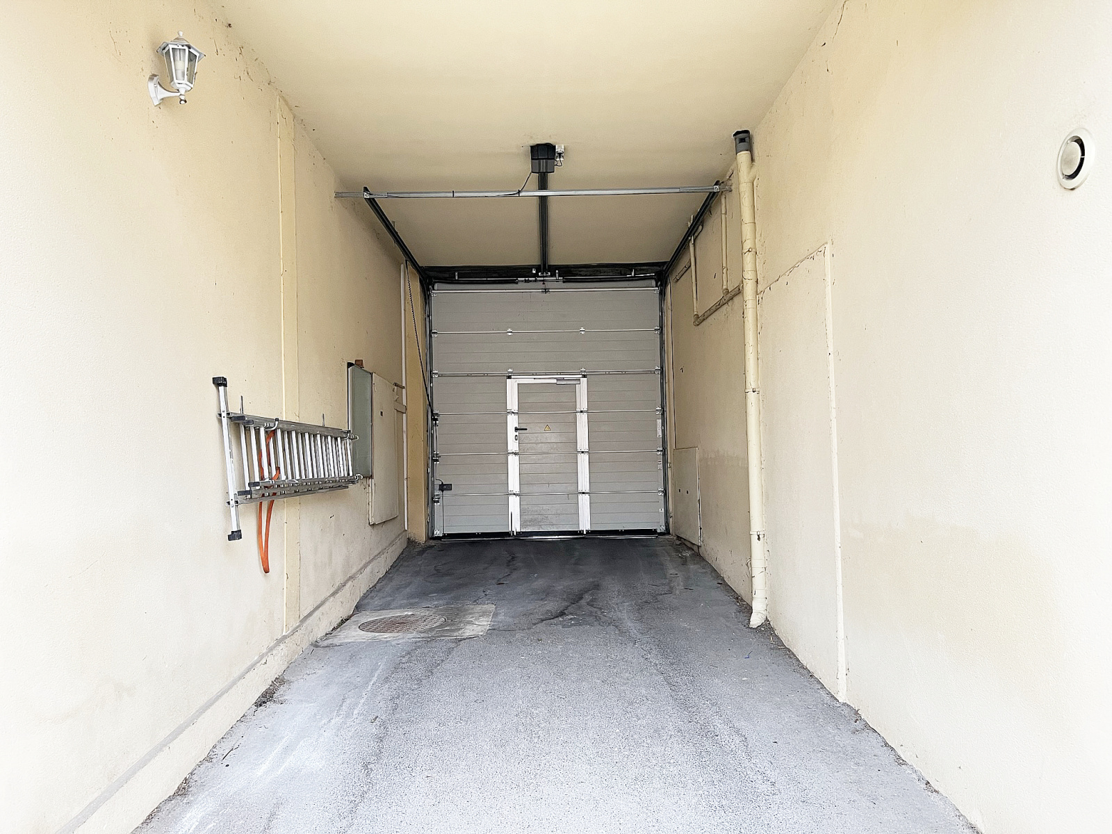 Parking accessible par une porte automatique de grande hauteur et largeur.