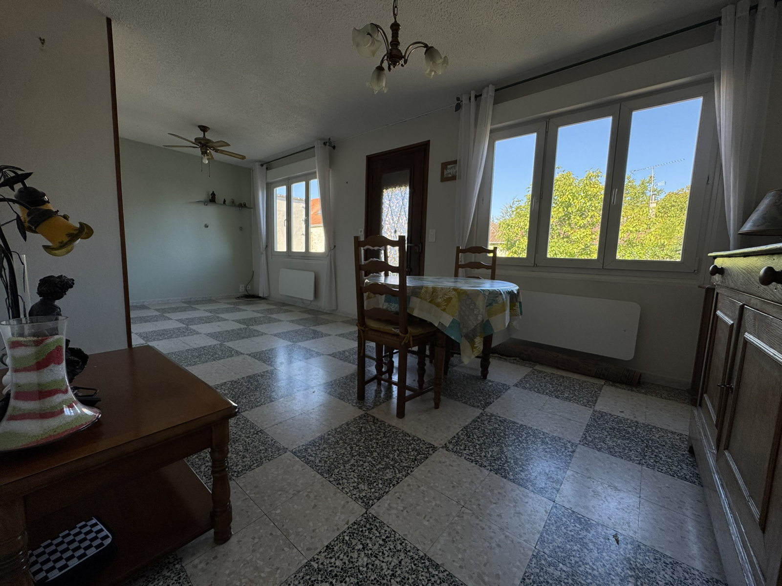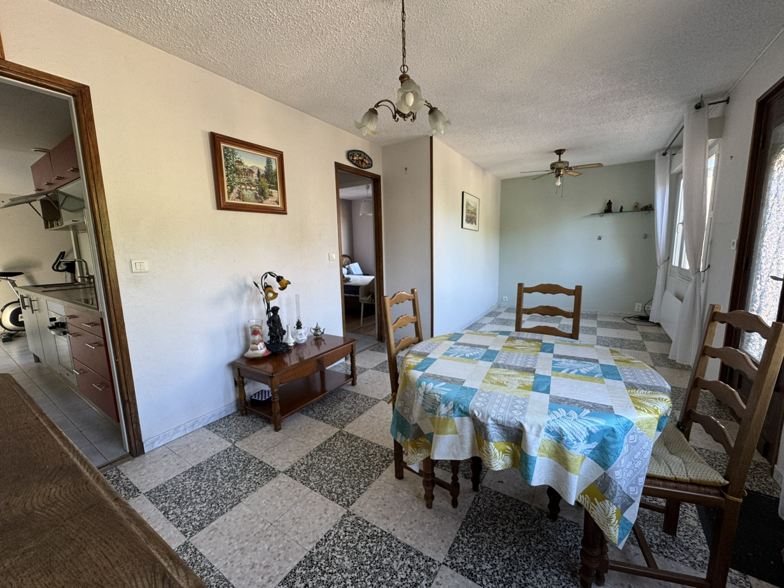 Un salon agréable et lumineux, une cuisine fonctionnelle avec son coin repas, une chambre, une buanderie avec dressing, salle d'eau et wc séparé.