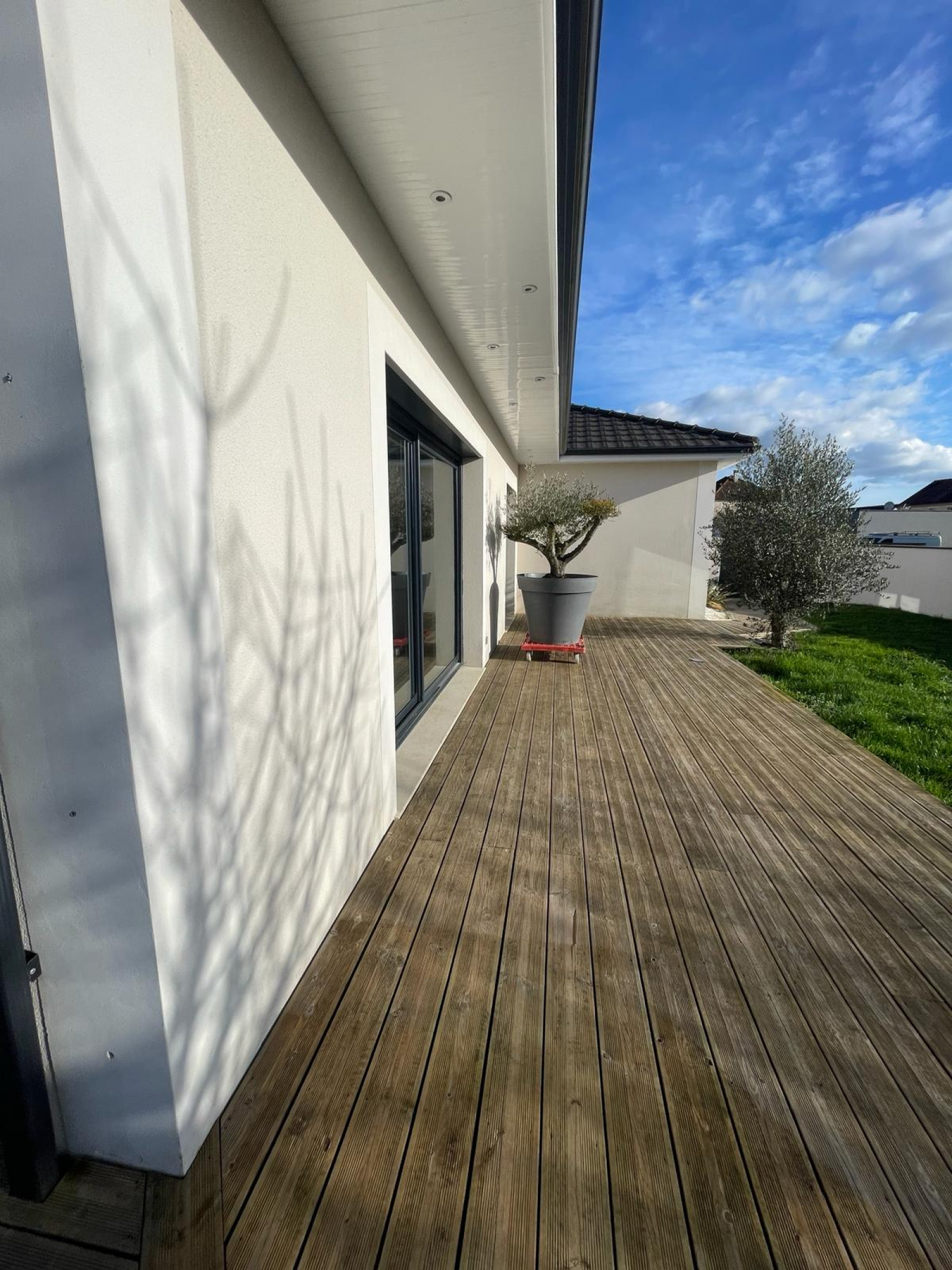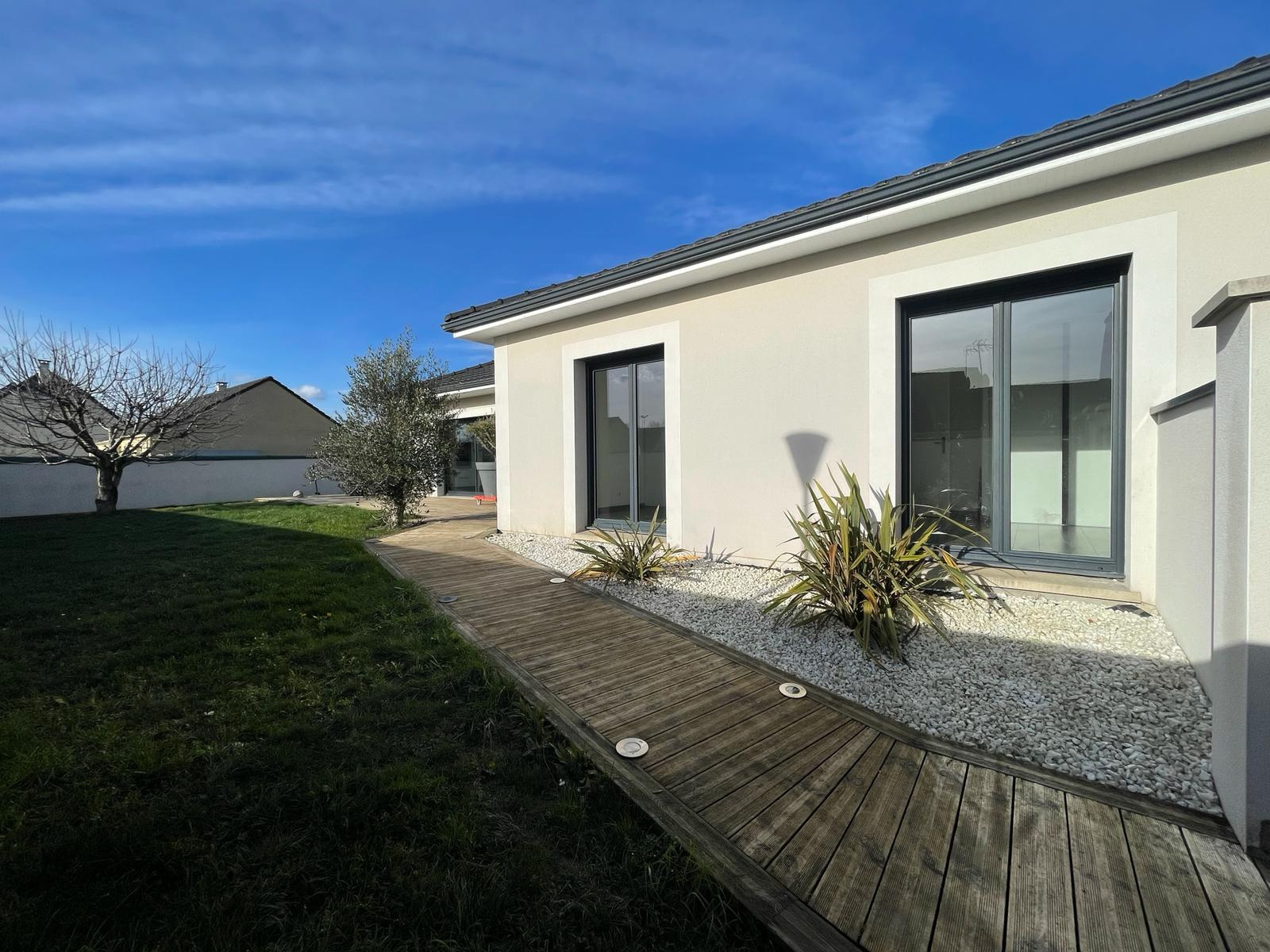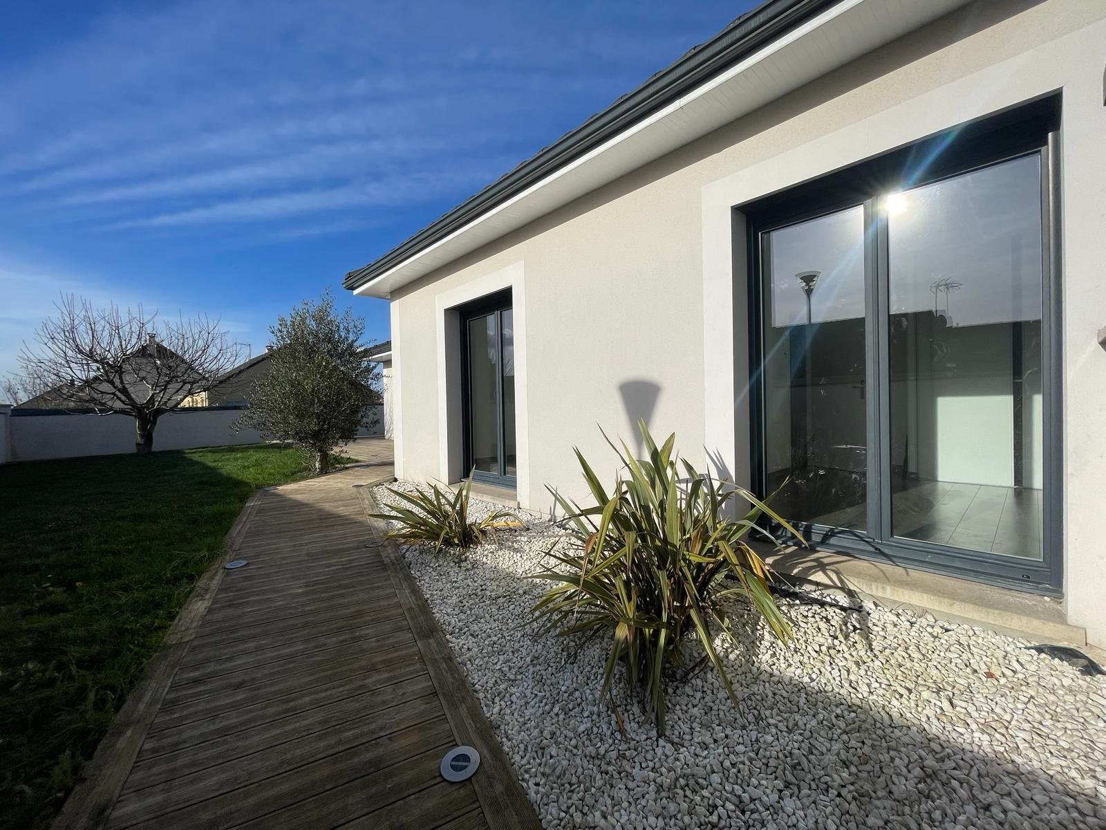 Jolie maison moderne très agréable à vivre avec ses grandes baies vitrées et son accès direct sur l'extérieur.