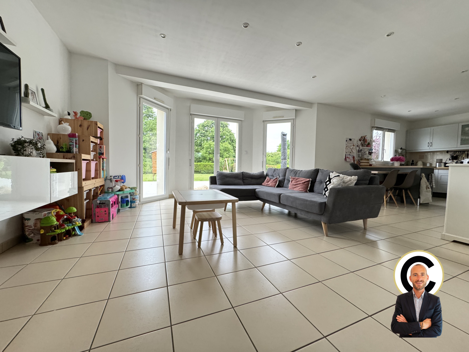 Comprenant au rdc : Entrée, salon séjour avec poêle à pellets ouvert sur une cuisine équipée et aménagée, wc, un bureau, une lingerie.
